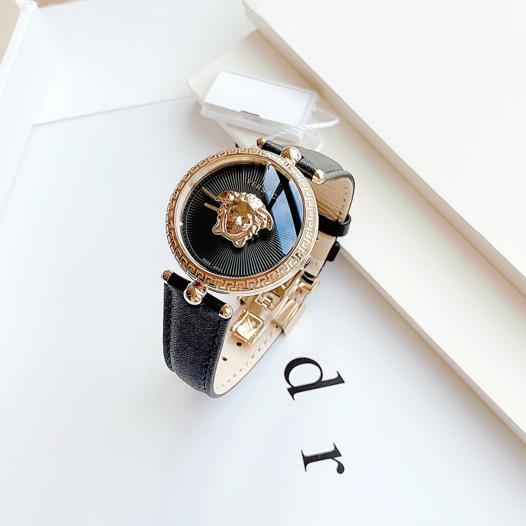 Versace Palazzo Empire Black Dial Black Leather Strap Watch for Women - VCO020017