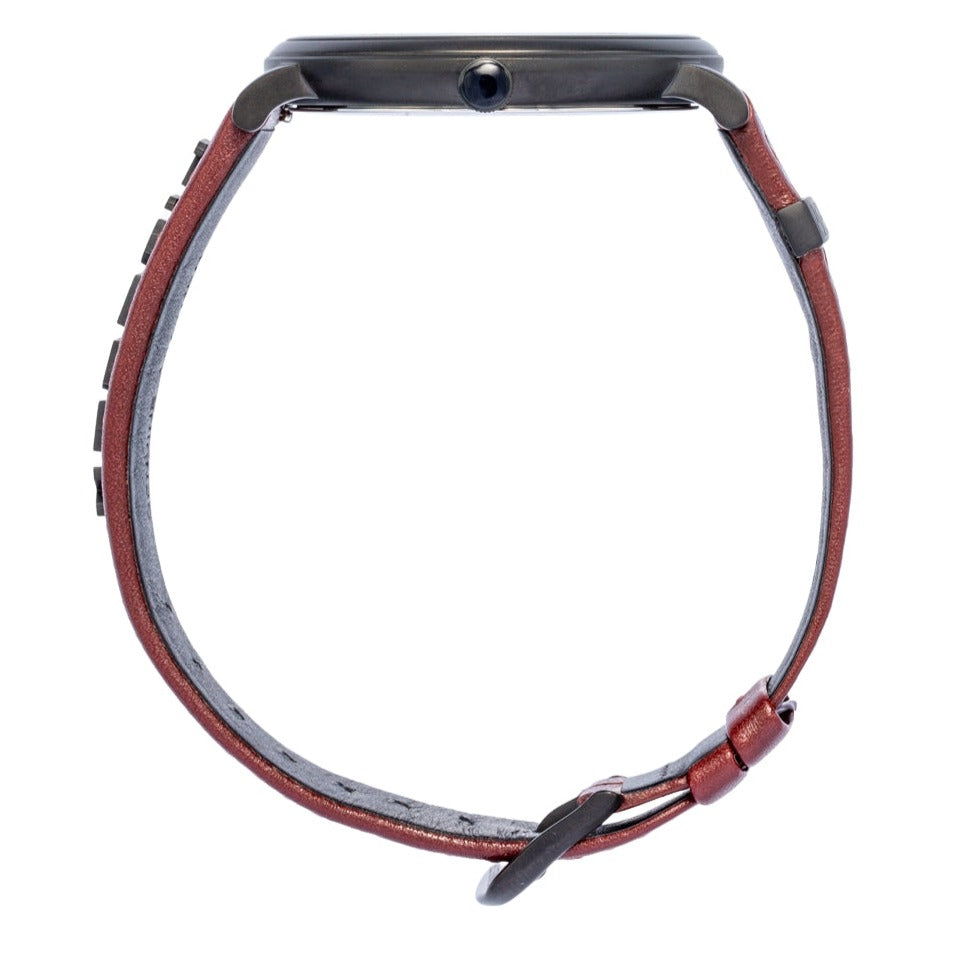 Versace V-Circle Manifesto Black Dial Maroon Leather Strap Watch for Men - VBQ040017