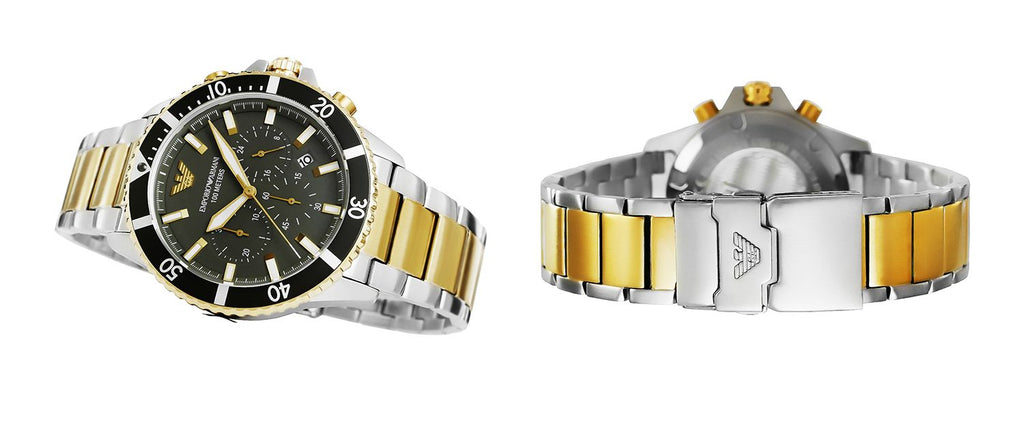 Emporio Armani Diver Chronograph Green Dial Two Tone Steel Strap Watch For Men - AR11361