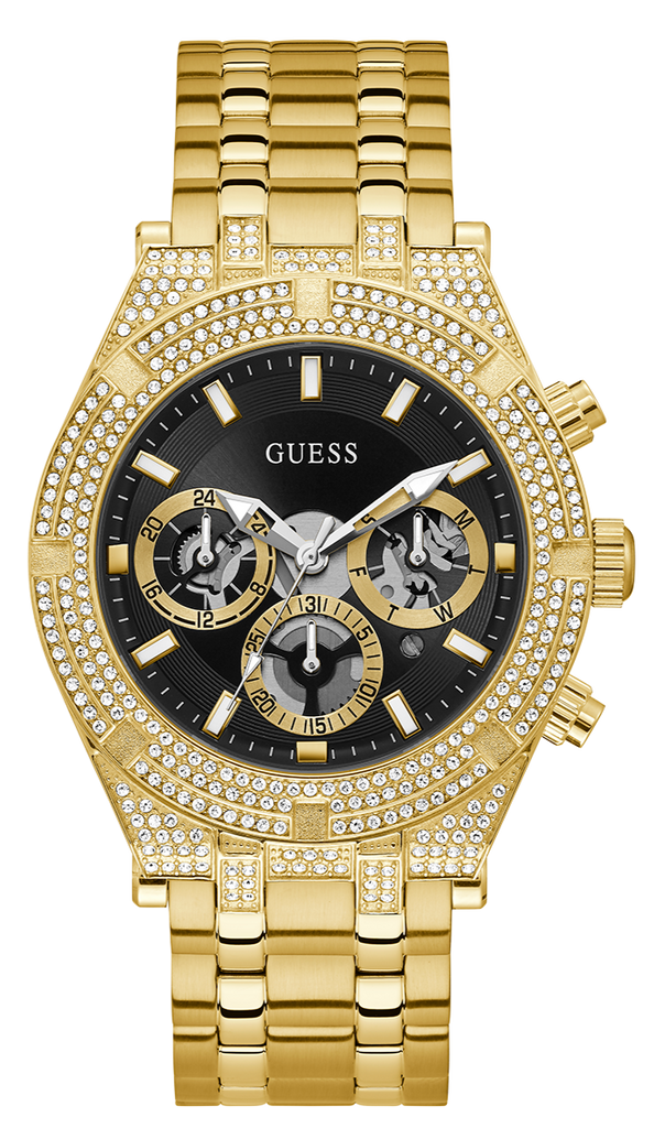 Guess Multifunction Diamonds Black Dial Gold Steel Strap Watch for Men - GW0455G2
