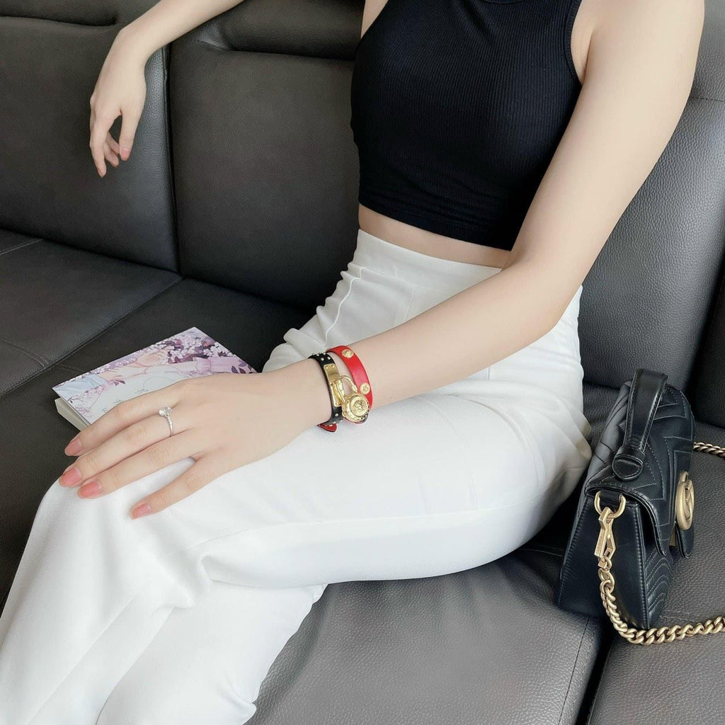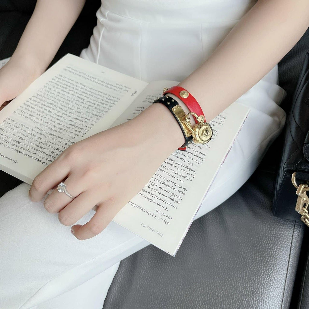 A charming and innovative timepiece, the Medusa Lock Icon watch is enriched with the iconic Greca on the top ring and on the padlock. The golden dial features the Versace logo at 12h. Striking 3D Medusa studs stand out, characterizing the watch straps. One by one, they embellish the long double tour strap in a red and black tone.