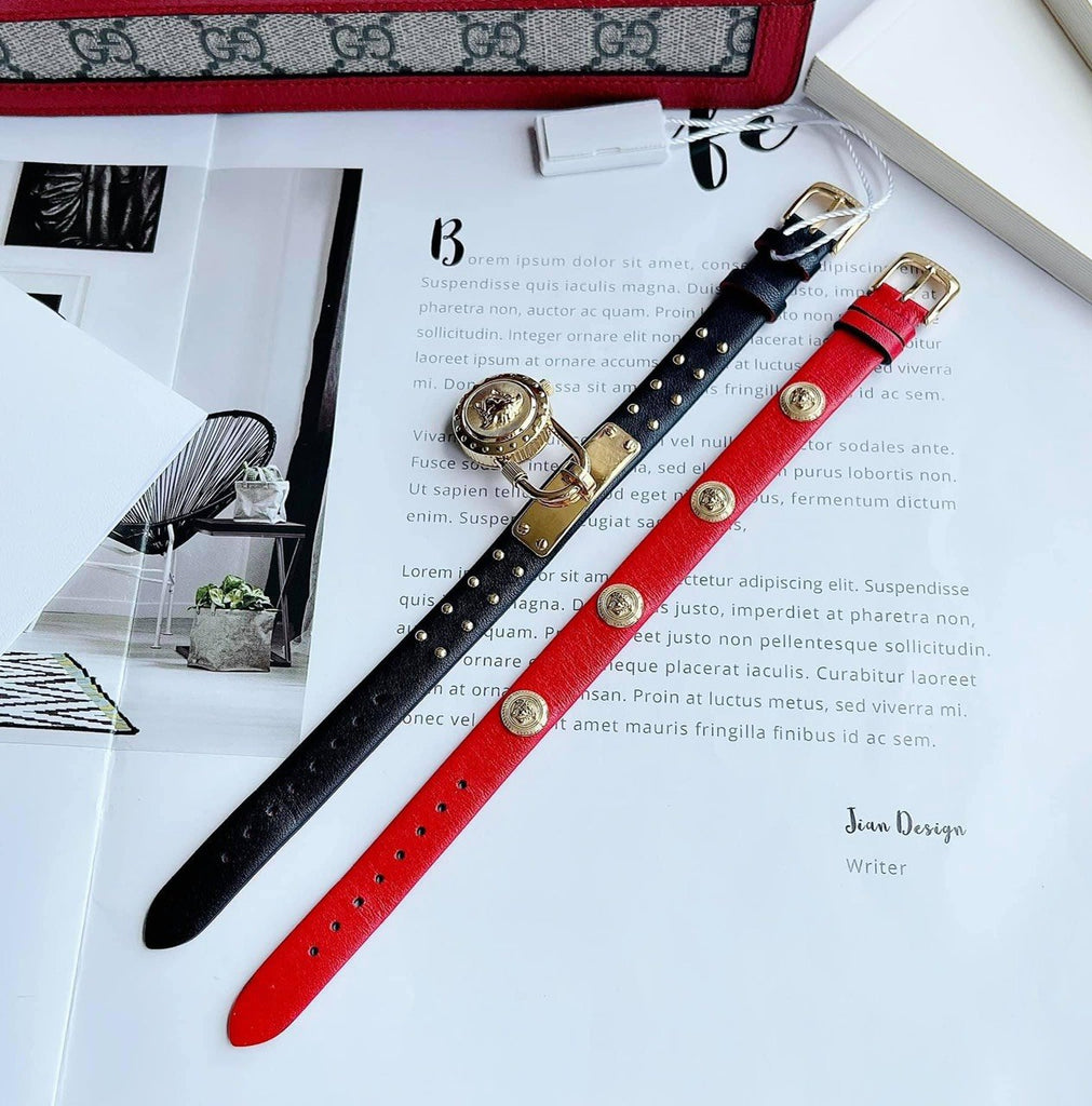 Versace Medusa Lock Icon Gold Dial Red Leather Strap Watch for Women - VEDW00119