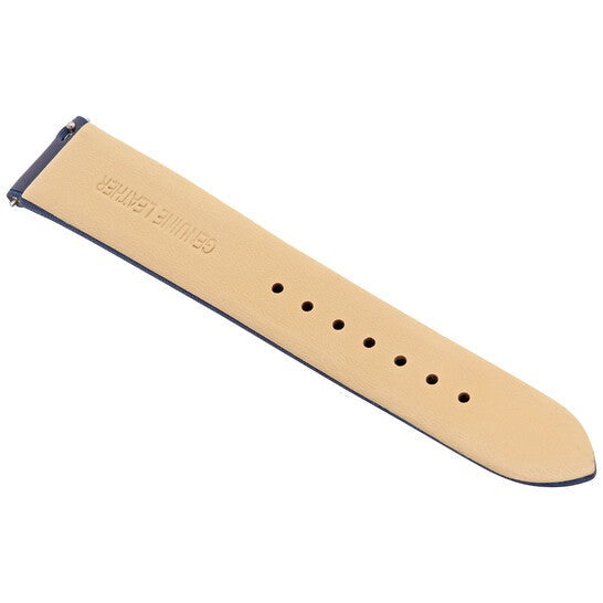 Stainless steel case with a dark blue (calfskin) leather strap. Fixed rose gold-tone bezel. Dark blue (greca motif) dial with rose gold-tone hands and index hour markers. The Medusa Dead logo appears at the 12 o'clock position. Dial Type: Analog. Quartz movement. Scratch resistant sapphire crystal. Pull / push crown.Solid case back. Round case shape. Case size: 38 mm. Case thickness: 7 mm. Band width: 11 mm. Tang clasp. Water resistant at 50 meters / 165 feet. Functions: hour, minute. V-circle Series. Dress watch style. Watch label: Swiss Made. Versace V-Circle Quartz Dark Blue Dial Ladies Watch VBP090017.