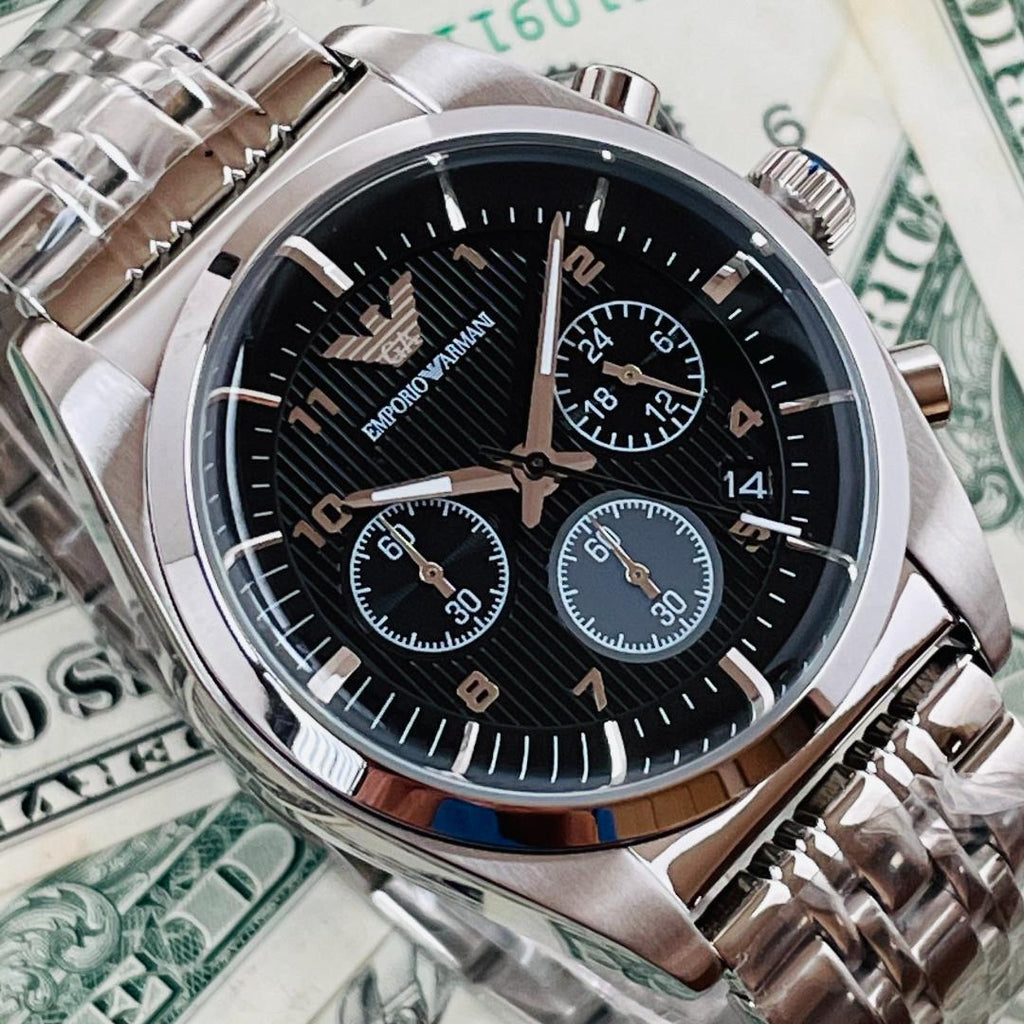 Emporio Armani Franco Black Dial Silver Steel Strap Watch For Men - AR0373