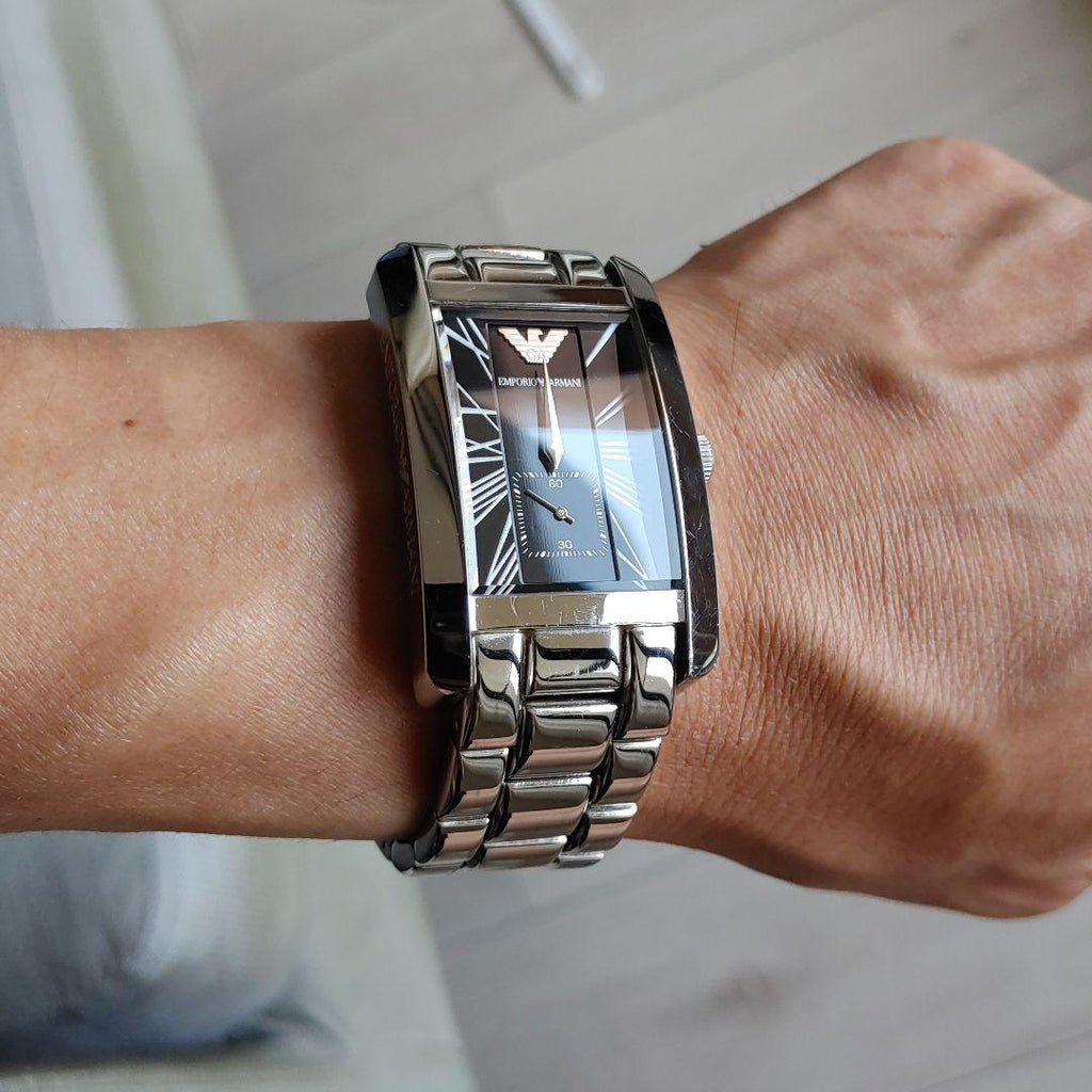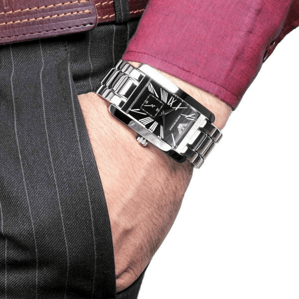 Emporio Armani Classic Black Dial Silver Stainless Steel Strap Watch For Men - AR0156