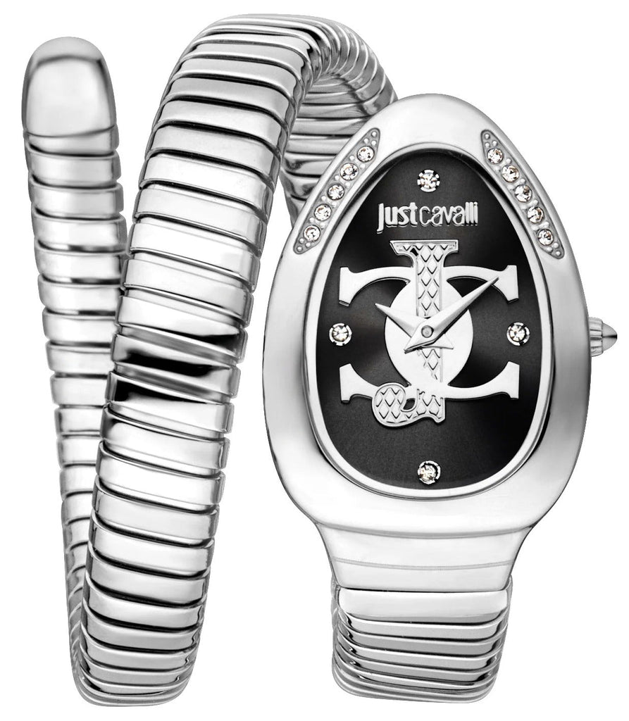 Just Cavalli Glam Evo 5 Black Dial Silver Steel Strap Watch for Women - JC1L227M0025