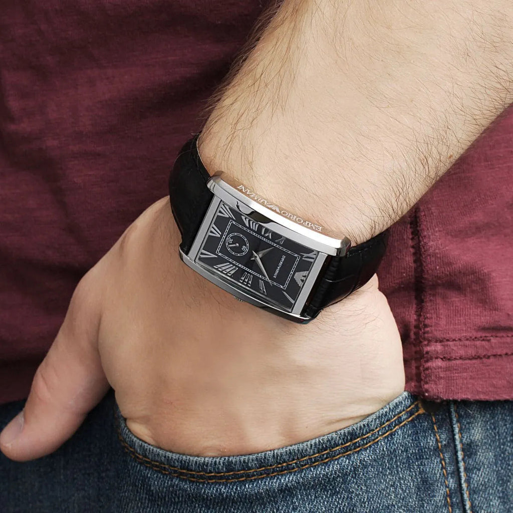 Emporio Armani Classic Analog Black Dial Black Leather Strap Strap Watch For Men - AR1604