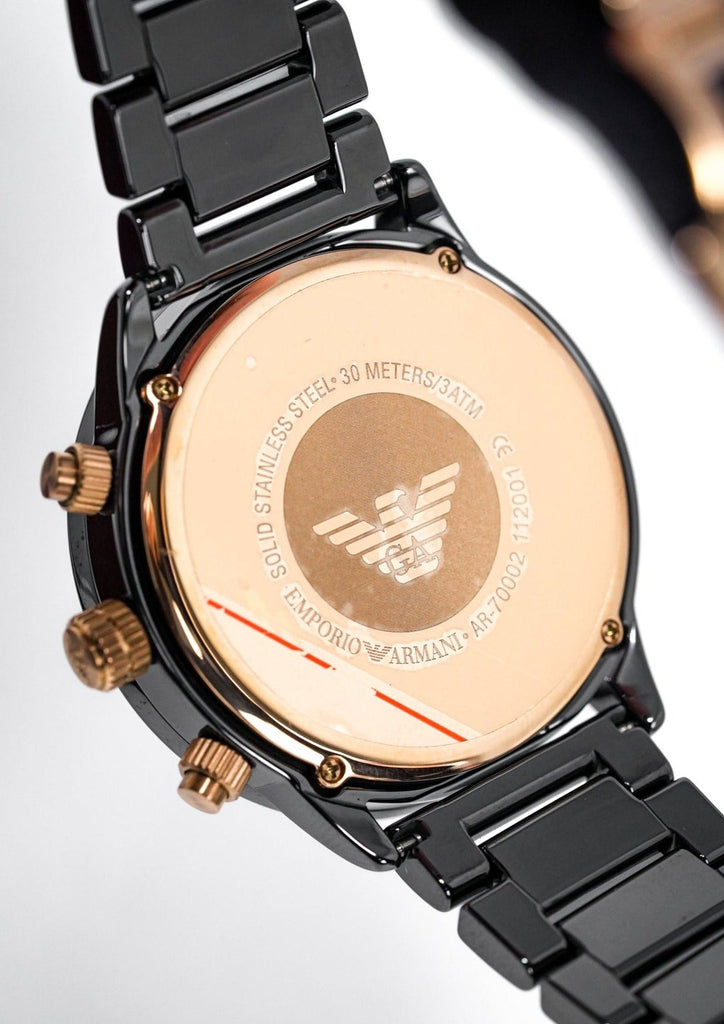 Emporio Armani Mario Ceramic Chronograph Black Dial Black Steel Strap Watch For Men - AR70002