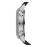 The gray dial is set in a solid steel case with a black leather strap, which gives the watch a luxurious look. Despite its size, the watch looks decent and is therefore suitable for everyday wear as well as for company.