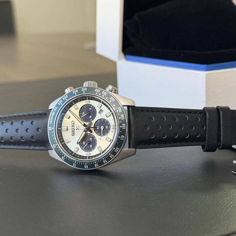 Seiko Prospex Speedtimer Solar Chronograph Ivory Dial Black Leather Strap Watch for Men - SSC943