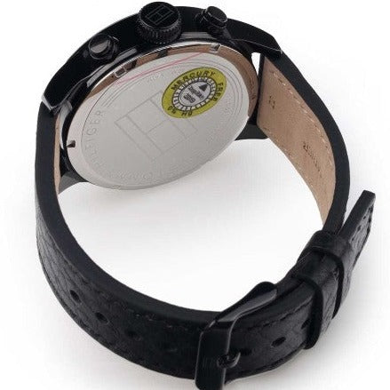 Tommy Hilfiger Jackson Quartz Blue Dial Black Leather Strap Watch for Men - 1791241