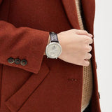 Love, courage, power and strength are the positive messages conveyed by Versace in this watch, V-Circle, the manifesto edition. It features a slim top ring and rehaut with a Greek key pattern. The case comes in a size of 42 mm diameter with small second hand and date display. The soft leather strap, also with contrasting edges is embellished with a Greek key engraved band. It also features case thickness of 7.40 mm.