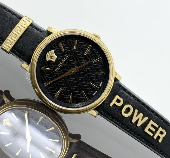 Elevate your style with the Versace V Circulus watch, designed for women who appreciate timeless elegance. Featuring a sleek black dial paired with a black leather strap, this quartz timepiece combines sophistication with reliable precision. Its refined design enhances any outfit, making it perfect for both everyday wear and special occasions. Experience luxury and craftsmanship in one stunning accessory.