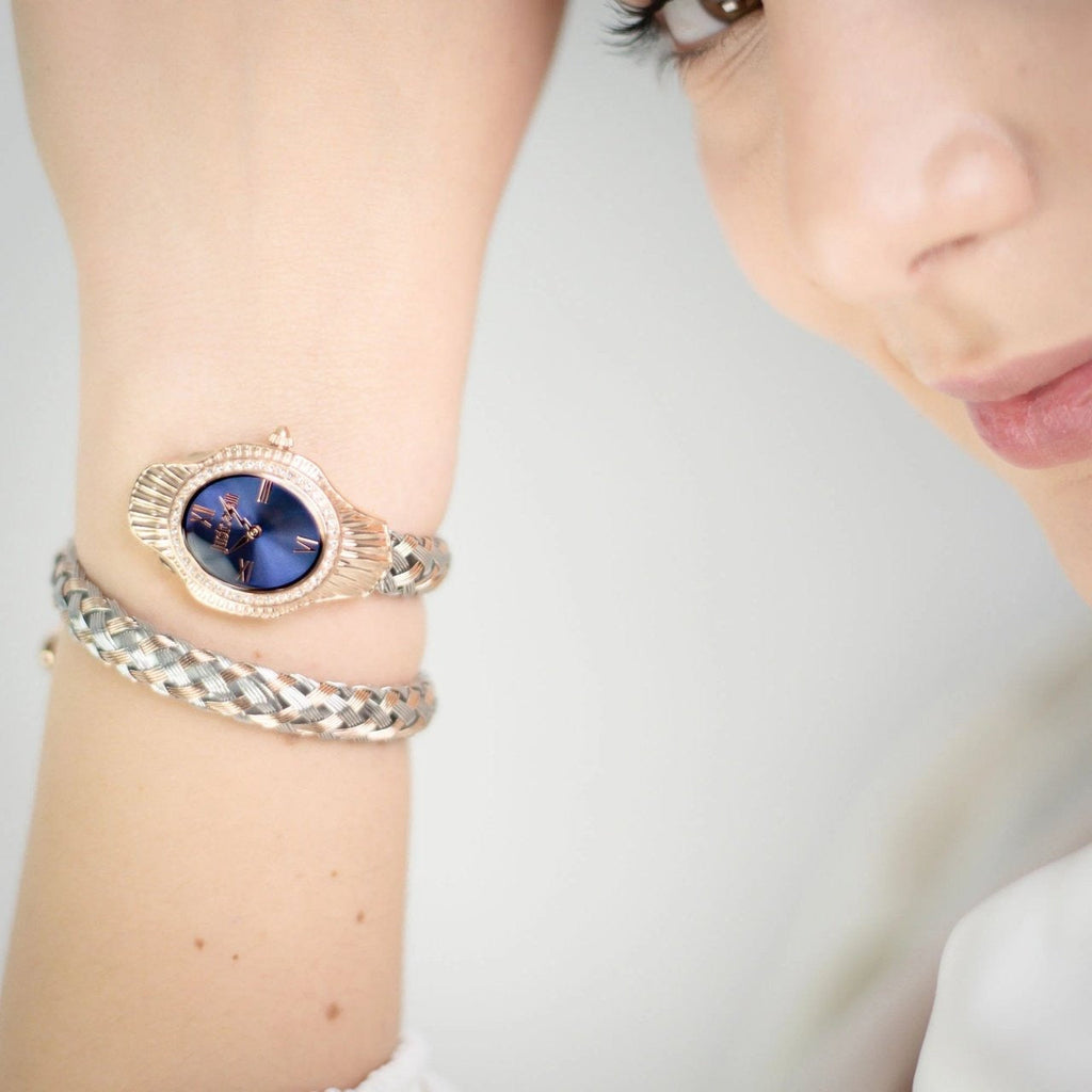 Just Cavalli Twined Blue Dial Two Tone Steel Strap Watch for Women - JC1L305M0065