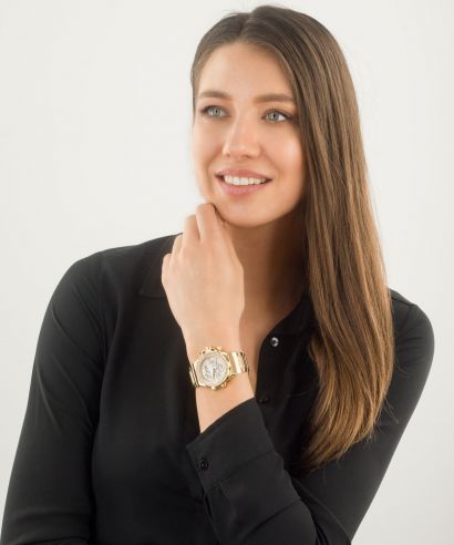 Versace DV-25 Gold Dial Off White Leather Strap Watch for Women - VQF030015