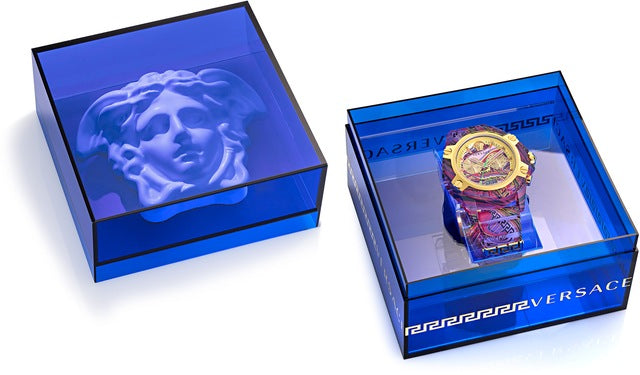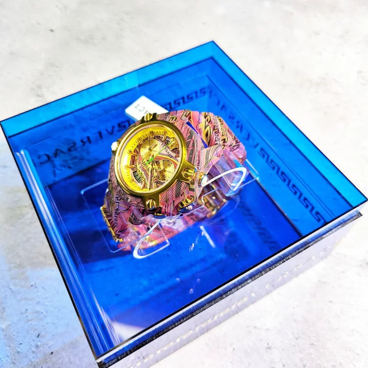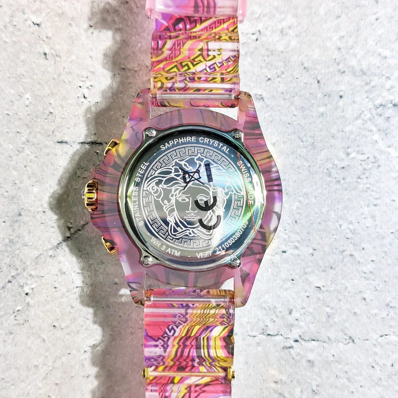 Versace Icon Active Chronograph Quartz Gold Dial Red Leather Strap Watch For Men - VEZ701222