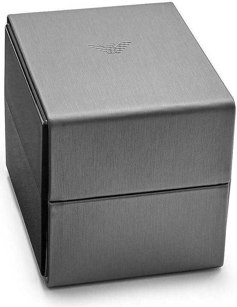 A sporty and stylish chronograph watch featuring a striking green dial, silver tone sub dials and a date window. Complemented by a stainless steel bracelet with a water resistance of up to 50m, this watch is perfect for everyday wear and is both fashionable and functional. Emporio Armani's 42mm watch features a green sunray dial with silver cd finished subeyes, chronograph movement and stainless steel bracelet.