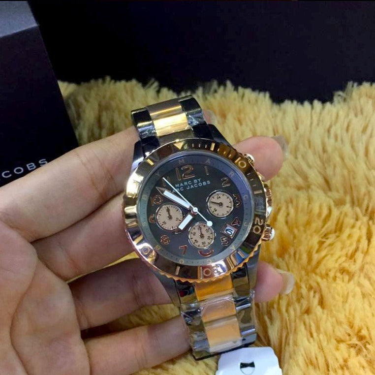 Marc Jacobs Marc Chronograph Grey Dial Two Tone Steel Strap Watch for Men - MBM3157