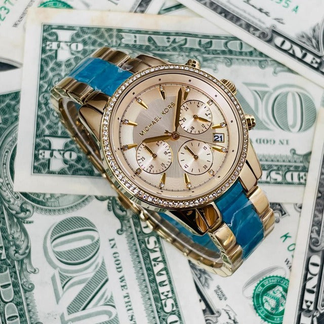 Michael Kors Ritz Gold Dial Two Tone Steel Strap Watch for Women - MK6328