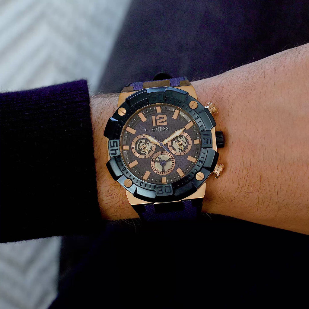 Guess Navigator Chronograph Blue Dial Blue Rubber Strap Watch for Men - GW0264G4