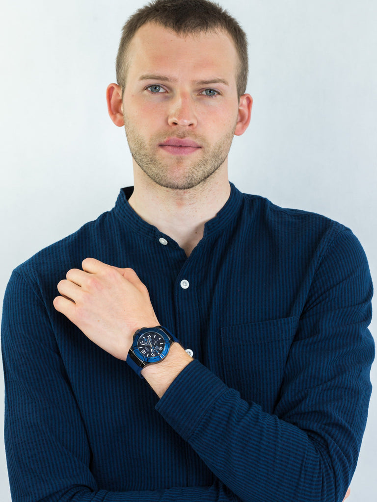 Sophistication meets sporty style for this watch with silicon strap, bringing a modern twist to a striking look, perfect for both daytime and evenings.