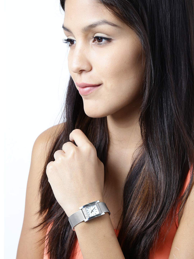 The bracelet is made of high-quality stainless steel. It can be easily taken off thanks to a comfortable clasp. The silver dial is protected against shocks and scratches by a mineral crystal. A water resistance of 5 ATM protects the watch from damages caused by splashes during showering or washing a car. Guess W0127L1 is an authentic watch that you can purchase in our authorised store. The model is packed in a branded box and comes with a manufacturer's warranty.