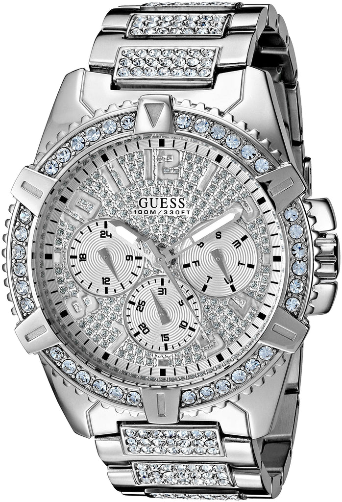 Bling it on with this oversized timepiece! Boasting 213 crystals on the case, multifunction dial and bracelet this stainless steel bracelet is sure to grab everyones attention.