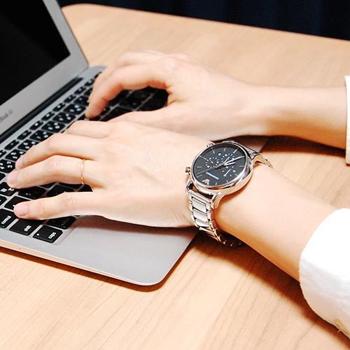Emporio Armani Chronograph Black Dial Silver Steel Strap Watch For Men - AR1853