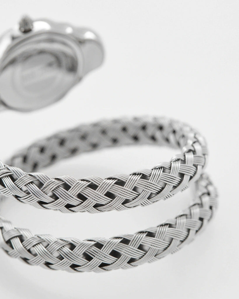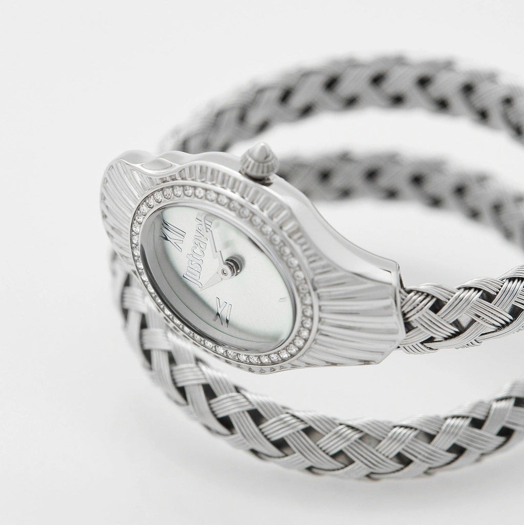 Just Cavalli Twined Mother of Pearl Dial Silver Steel Strap Watch for Women - JC1L305M0015