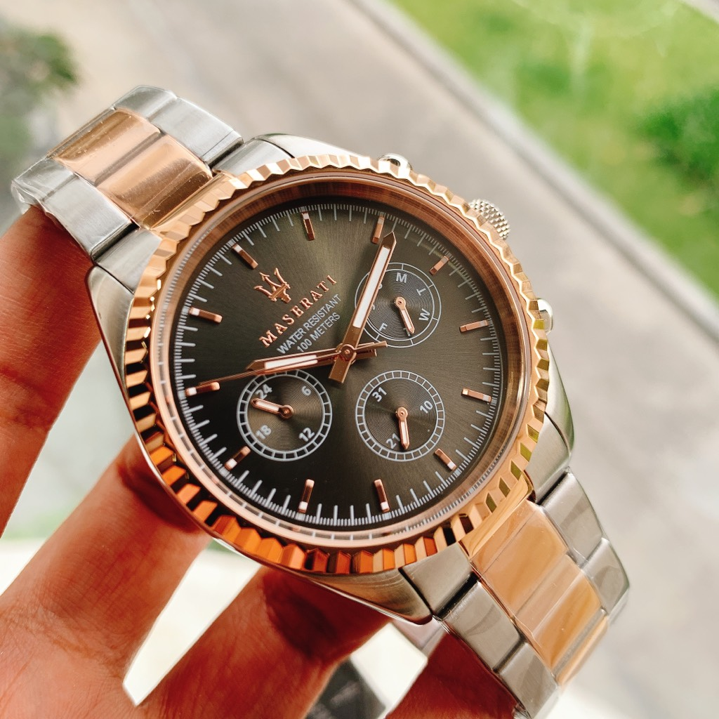 Maserati Competizione Analog Black Dial Two Tone Stainless Steel Strap Watch For Men - R8853100020