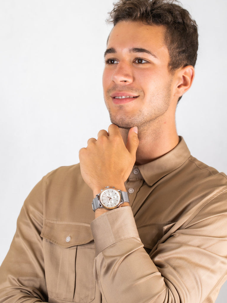 Maserati Epoca White Dial Chronograph Silver Mesh Bracelet Watch For Men - R8873618009