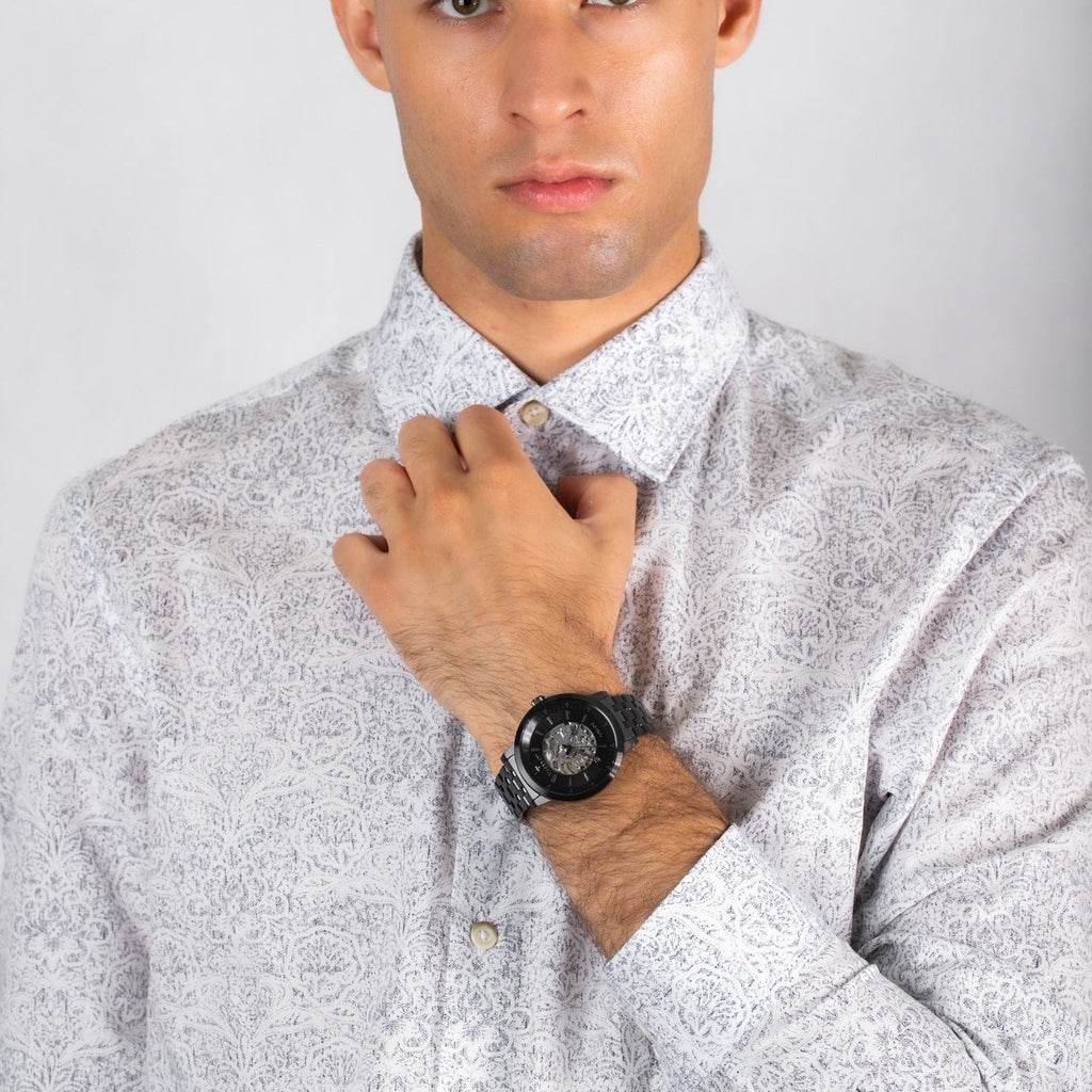 Maserati Granturismo Sport GT Skeleton Black Dial Black Steel Strap Watch For Men - R8823134003