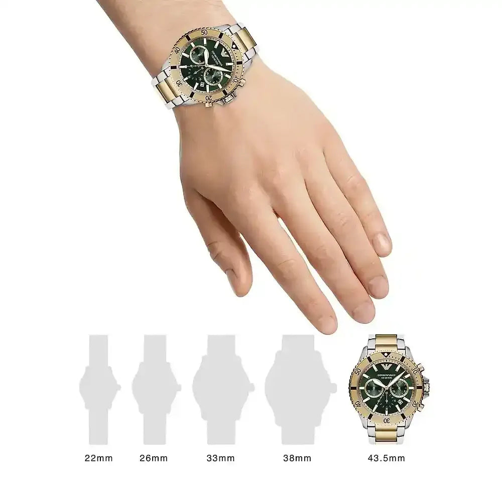 Emporio Armani Sea Explorer Chronograph Green Dial Two Tone Steel Strap Watch for Men - AR11586