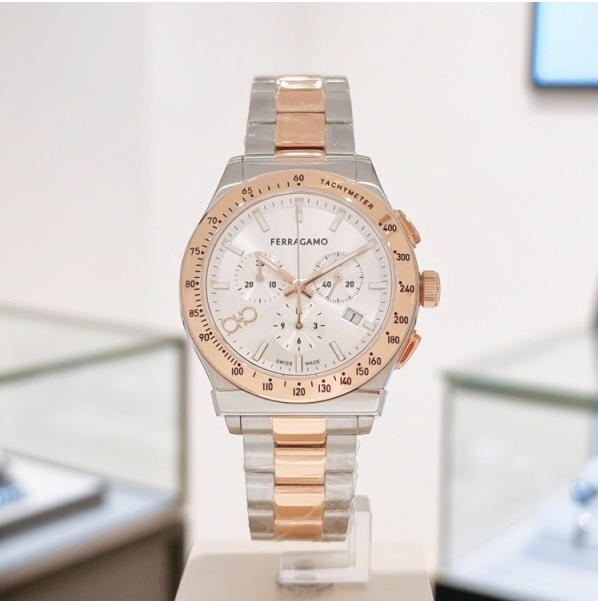 Salvatore Ferragamo 1927 Chrono Silver Dial Two Tone Steel Strap Watch for Men - SFKZ00623