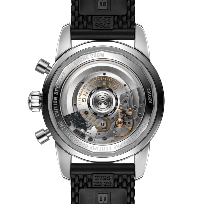 Available in a variety of materials including stainless steel and 18k red gold, the Superocean Heritage B01 Chronograph 44 features a range of black, blue, silver, or green dials. Offered either with a matching mesh bracelet, or a “mesh-styled” rubber strap fitting a folding buckle, this Superocean Heritage is powered by the in-house Breitling Manufacture Caliber 01, a COSC-certified chronometer.