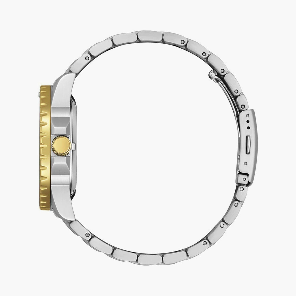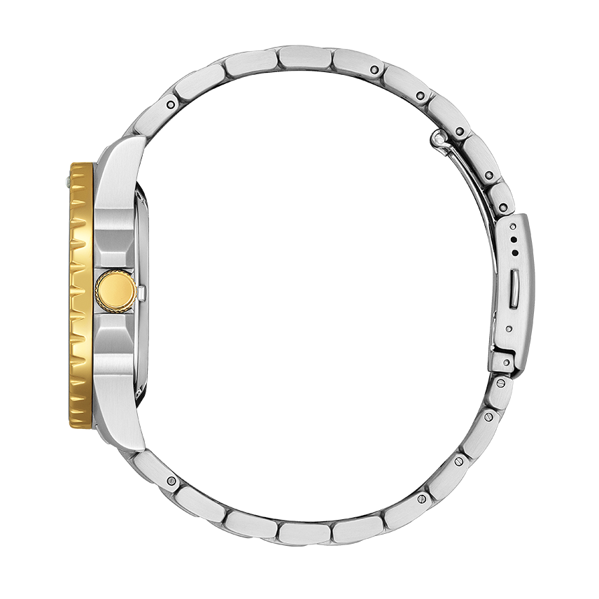 Soar to new heights with this modernized timepiece from our Mechanical Collection. Its modern and contemporary design reflects great craftsmanship and enduring quality. Its sleek deep blue dial, Date, stainless steel case and two-tone bracelet complement its pure and appealing aesthetic.