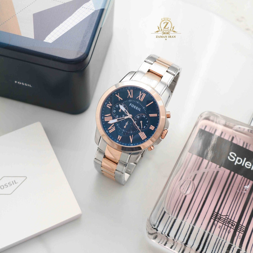 Fossil Grant Chronograph Blue Dial Two Tone Steel Strap Watch for Men - FS5024