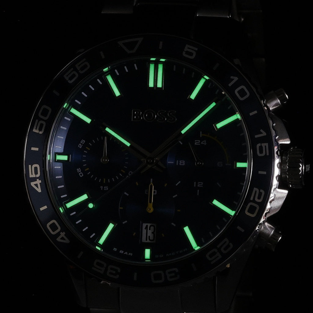 Hugo Boss Runner Chronograph Blue Dial Silver Steel Strap Watch for Men - 1514143