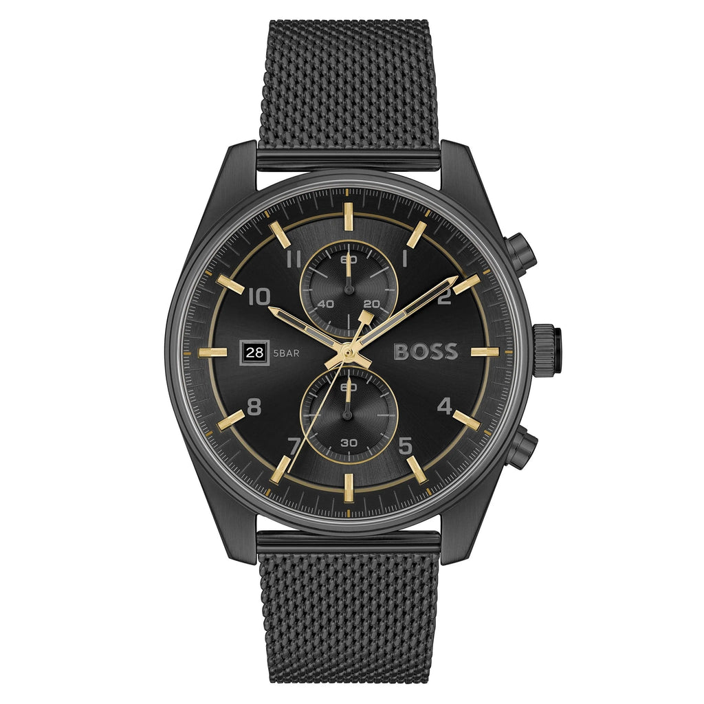 Hugo Boss Skytraveller Chronograph Black Dial Black Mesh Strap Watch for Men - 1514150