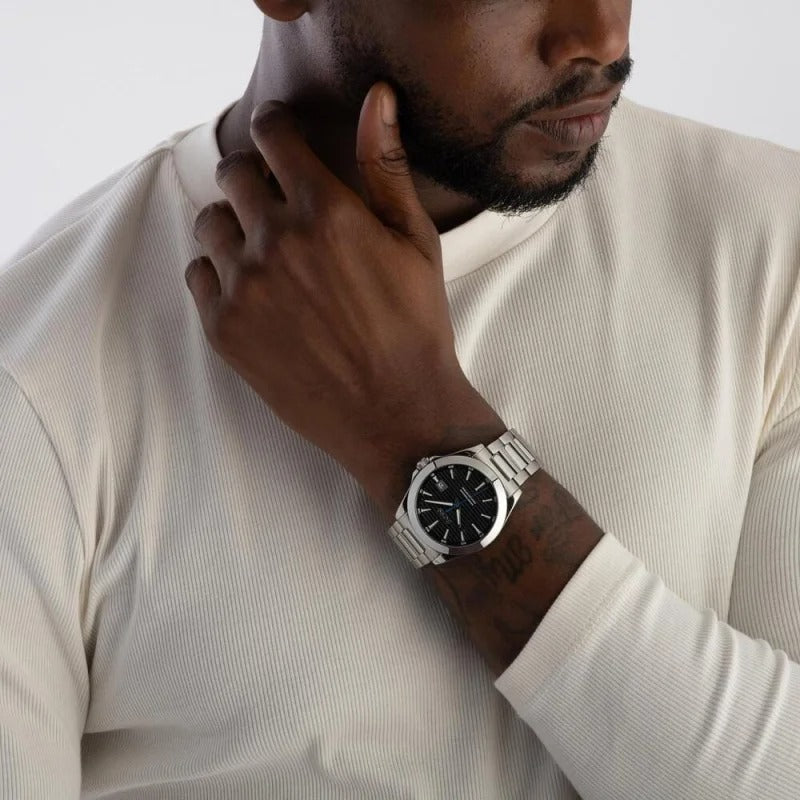The Hugo Boss Strike combines timeless elegance with contemporary design, featuring a striking black dial that commands attention on any wrist. Crafted with a polished silver stainless steel strap, this timepiece delivers the perfect balance of sophistication and durability for the modern man. The clean, minimalist face ensures easy readability while maintaining a refined aesthetic that transitions seamlessly from boardroom to casual settings. Built to withstand daily wear, this watch represents the quality and prestige synonymous with the Hugo Boss brand. An investment in style that never goes out of fashion.