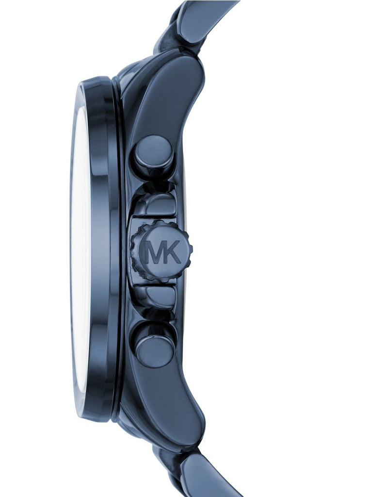 The Michael Kors, Brecken series features a navy blue ion-plated stainless steel 40mm case, with a fixed navy blue ion-plated bezel, a navy blue dial and a scratch resistant mineral crystal.