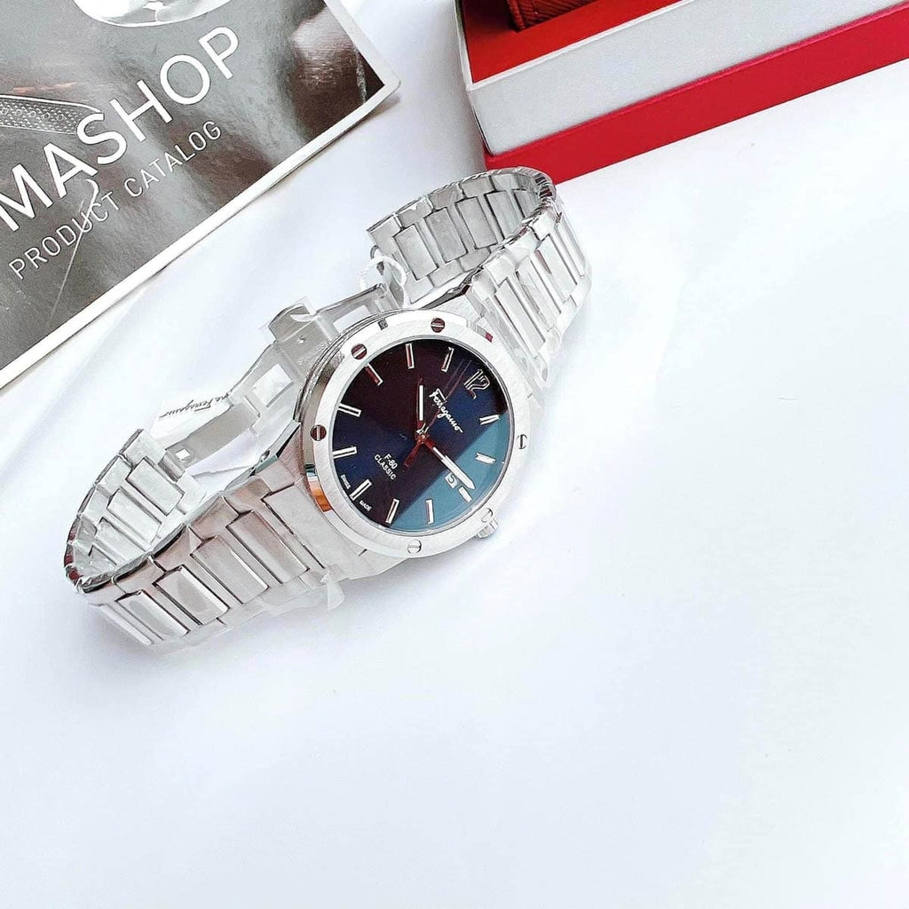 Salvatore Ferragamo F-80 Classic Blue Dial Silver Steel Strap Watch for Men - SFDT01320