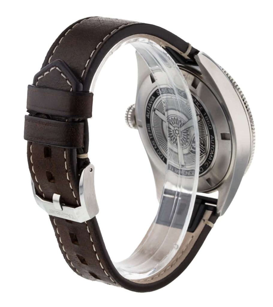 A key feature is the Autavia’s “quick release” button, which allows you to easily swap bracelets and straps without tools. Just push the button on the inside of the strap to release it from the springbar, which stays in place.