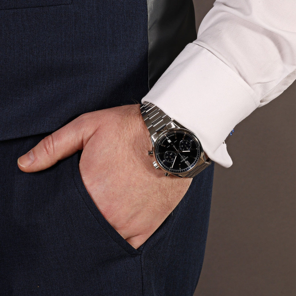 A knock-out timepiece with 42mm polished, fine-brushed steel case, rhodium-plated indexes and hands and an iridescent dark blue dial. This pedigree TAG Heuer Carrera matches Swiss precision timekeeping with confident and elegant style.