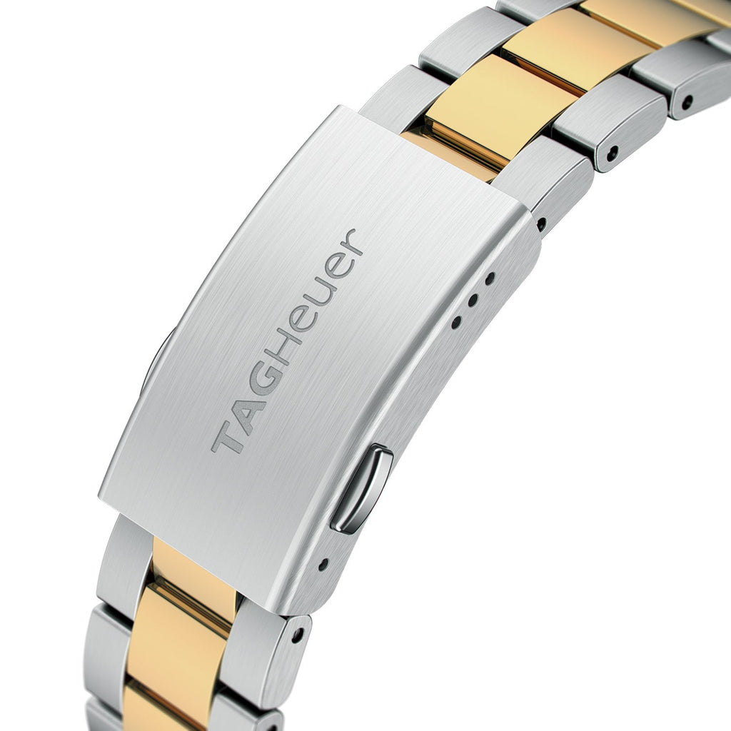 Date display at the 3 o’clock position. Quartz movement. Scratch resistant sapphire crystal. Screw down crown. Solid case back. Round case shape, case size: 41 mm, case thickness: 11 mm. Band width: 20 mm, band length: 8 inches. Deployment clasp. Water resistant at 200 meters / 660 feet. Functions: date, hour, minute, second. Luxury watch style. Watch label: Swiss Made. Item Variations: WAZ1120 BB0879, WAZ1120-BB0879, WAZ1120/BB0879, WAZ1120BB0879. Tag Heuer Formula 1 Navy Blue Dial Two-tone Men’s Watch WAZ1120.BB0879.
