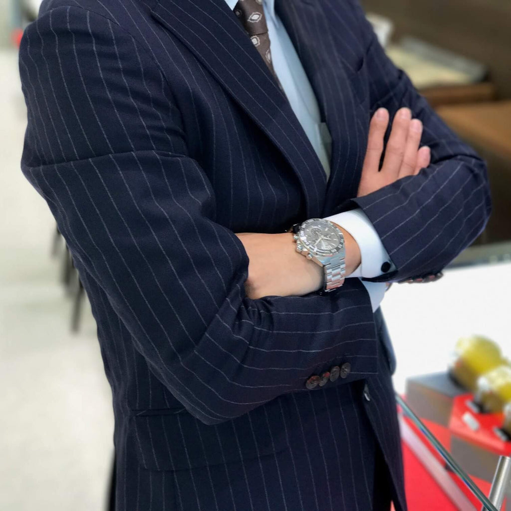 The 43mm stainless steel case houses a luxurious anthracite grey dial with bold steel indexes for a contrasting finish.