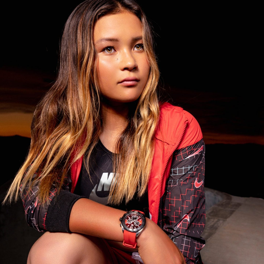 With an unmistakable vivid red sunray brushed dial and matching rubber strap, this fast-moving chronograph is ready to roar ahead in style.