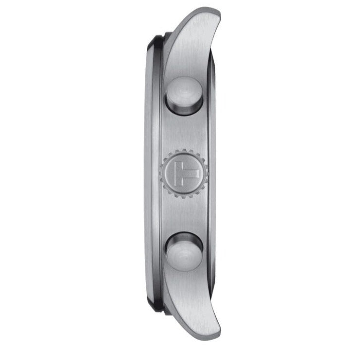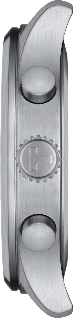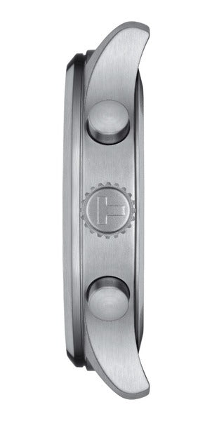 The Tissot Chrono XL Black Watch T116.617.16.062.00 combines a 45mm round-shaped stainless steel case and a black interchangeable embossed cow leather strap with a traditional buckle. It has a black analogue dial with luminescent hands, a date display, and three chronograph sub-dials protected beneath scratch-resistant sapphire crystal glass. Power is generated by the Swiss quartz movement with an end-of-life indicator. This model also has a water resistance of up to 100 metres.