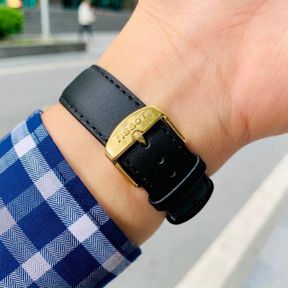 The Tissot Classic Dream series watch features a stainless steel 38 mm case, with a fixed bezel a black dial and a scratch resistant sapphire crystal.